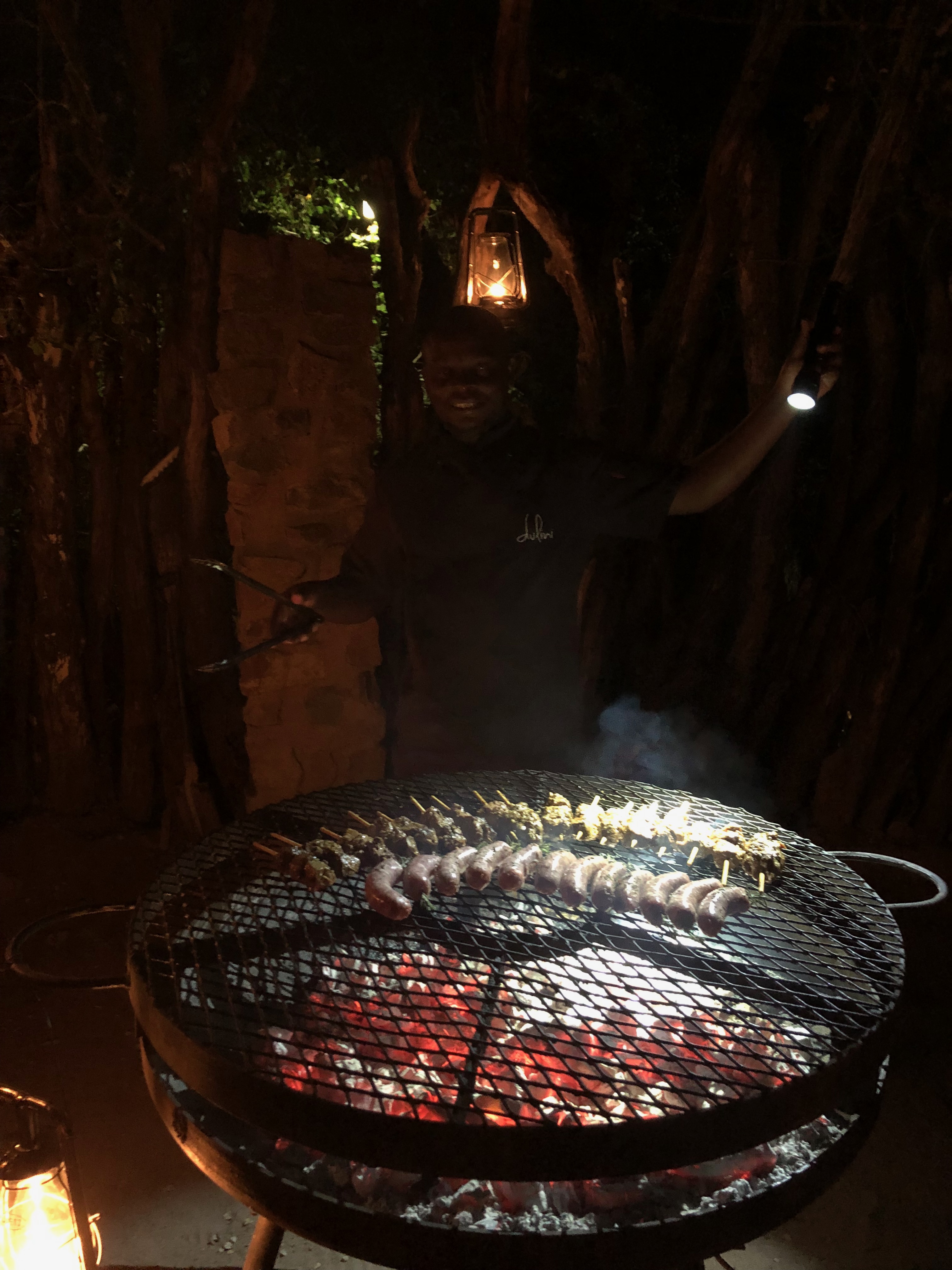 Our dinner in the BOMA (British Officers Mess Area) was just beautiful with chef cooking lean meats and gorgeous vegetables over the open fire on the Brai (South African Barbecue) and the entire staff singing and dancing for us! Not a dry eye in the bunch!